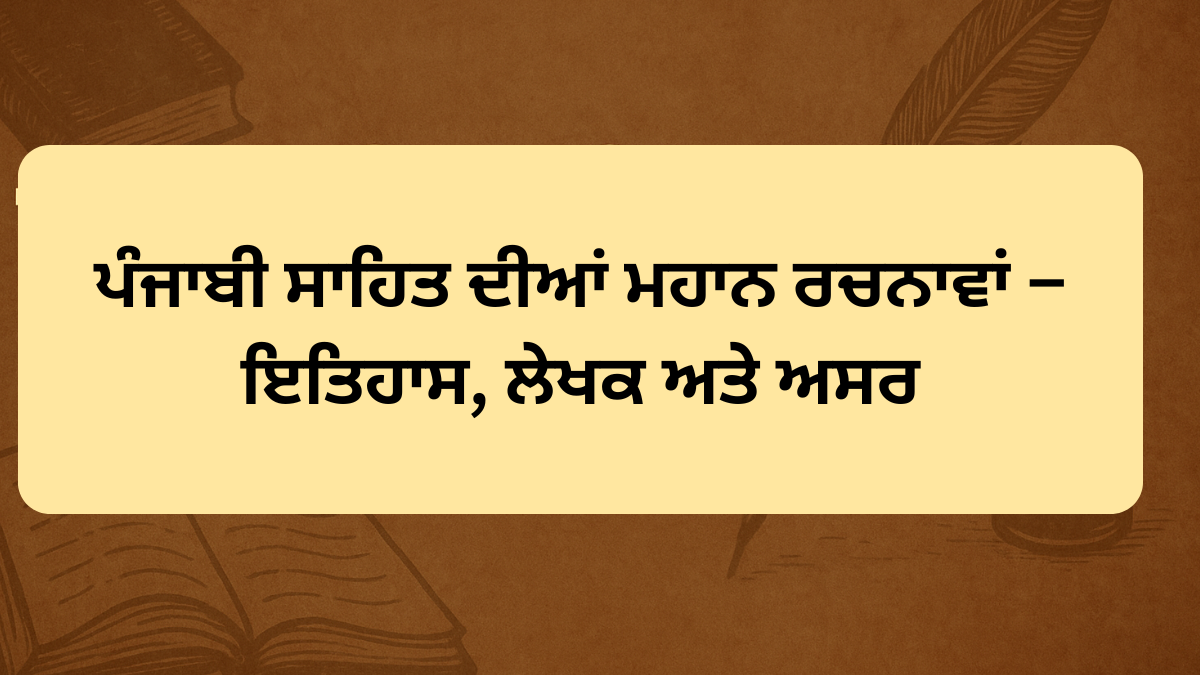 ਪੰਜਾਬੀ ਸਾਹਿਤ ਦੀਆਂ ਮਹਾਨ ਰਚਨਾਵਾਂ – ਇਤਿਹਾਸ, ਲੇਖਕ ਅਤੇ ਅਸਰ